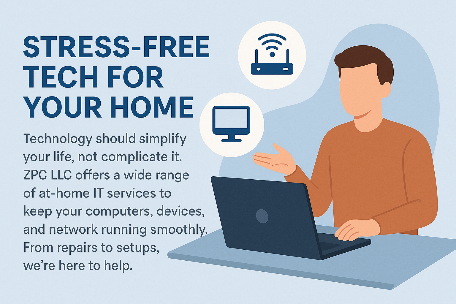 Don't let tech troubles frustrate you. Contact ZPC LLC for prompt, reliable, and affordable home IT support.